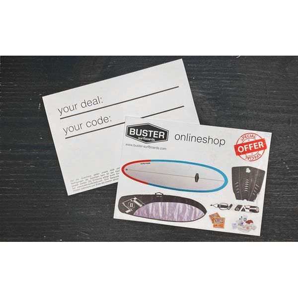 Ein schöne Geschenkidee für Surfer und alle die es werden wollen, mit dem du garantiert nichts falsch machen kannst. Such dir einfach einen Gutscheinbetrag aus und du bekommst von uns einen Gutscheincode / eine Karte mit einem Gutscheincode, der bei uns im Onlineshop eingelöst werden kann.